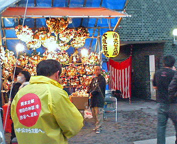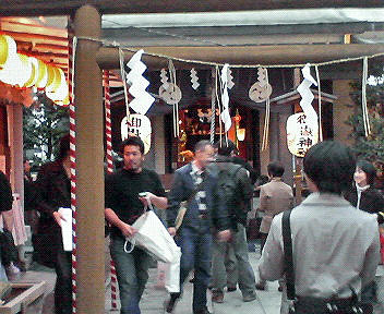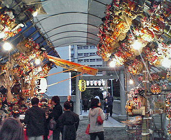 酉の市 ○酉の市 風邪で学校を二日休んだ。休講したので、病院で診断書も貰った。診療より、薬より、診断書が高い。日本の医療については欧米と比べてさまざまな意見があり、私にはよく分からない。ただ混合診療といえども、財力によって極端な医療格差がつくことだけは避けるべきだろう。そのために行政府と立法府がすることは、山ほどあるはずだ。どんな人も感謝しながらお医者にかかれるような世の中でありたいものだ。 11月11日日曜日、妻と渋谷~原宿を歩いた。その時に宮益坂の御嶽神社の酉の市に寄ったので、そのときの写真を掲載する。思えばこの日、冷たい時雨に打たれたのが、季節の変わり目とも相俟って風邪の引き金を引いたのだろう。 ☆御嶽神社です。宮益坂の横、さらに急な階段を上ります。ここは昔、美竹町と言いました。つまり「ミタケ」です。小学生時代には親しい場所です。母に連れられて、一度だけこの酉の市に来たことがあります。なんと美しく綺麗な縁日の光景だろう、と目を見張ったことを覚えています。 ☆熊手を売る見世です。手前の人は、何かのイベントかムーヴメントに関わるウィンドブレーカーを着ています。ハチ公? 岡本太郎? ☆見世の側から、宮益坂方面を見ました。ぽつりぽつりながら、それでも人が来ています。渋谷にも、こうして小ぢんまりながら酉の市があるのです。 [0回]